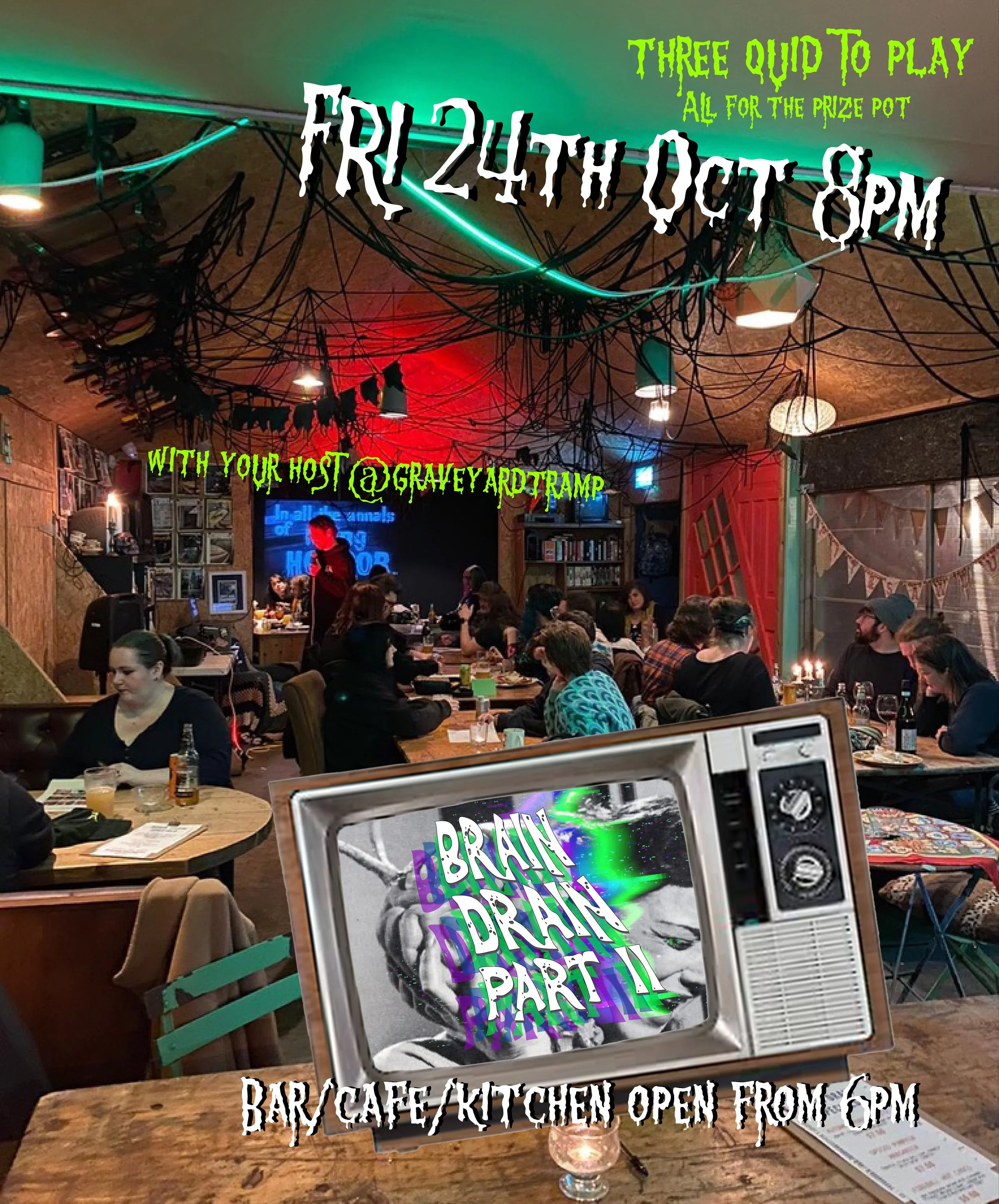 IT’S BACK! The Halloween brain drain quiz with your host @graveyardtramp. The quiz master is ready to test your Halloween movie knowledge … come and give him hell! …….’I’m every nightmare you’ve ever had. I am your worst dream come true. I am everything you ever were afraid of!’ *bonus point on the night for guessing that film quote! Book your place - £3 for the pot! Link in bio to pay and play 🪰🪰🪰🪰🪰🪰🪰
