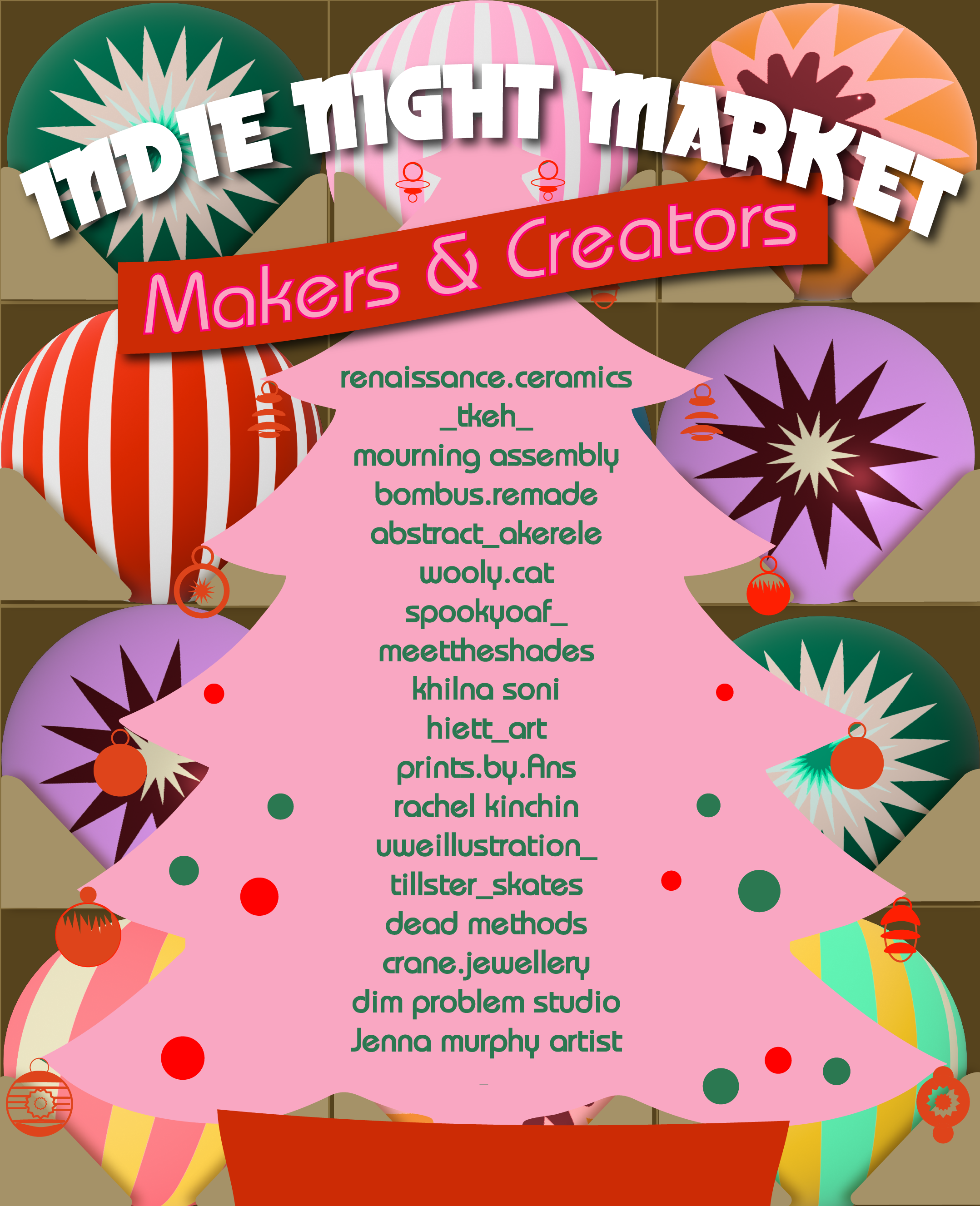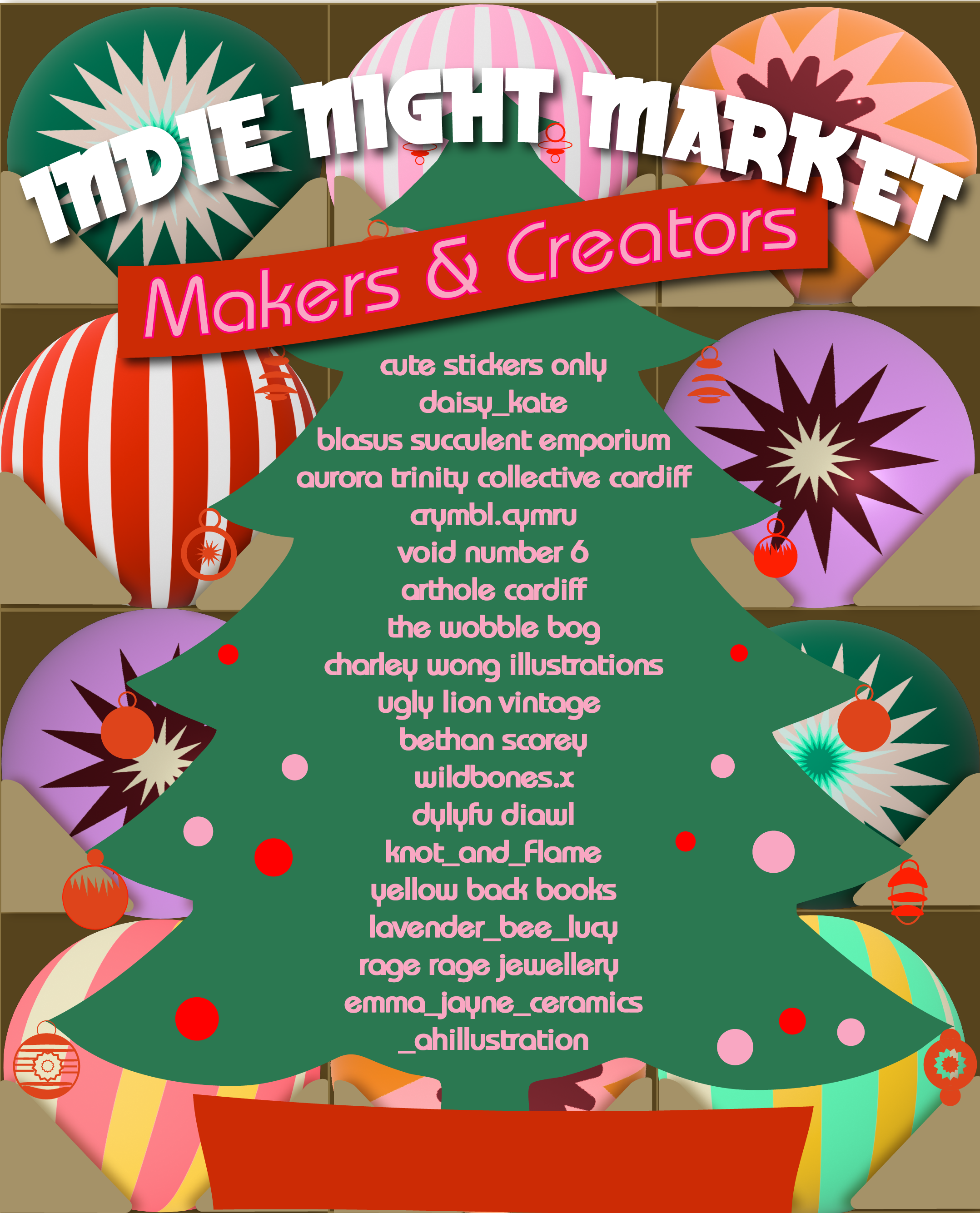 Join us on Monday, 1st Dec 6 -10 pm for a XMAS market of treats, goodies and great company.